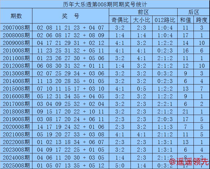 袁军师体彩大乐透第2026008期历史同期奖号分析: