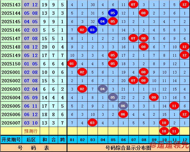 后区分析:在第008期历史同期开奖中,和值大小为6:13,跨度奇偶比为12:7,本期后区注意两码10和11。