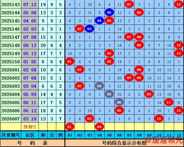 后区分析(一区01-04,二区05-08,三区09-12):上期后区开出奖号03和10,最近10期后区三区落号比为5:13:6,本期后区关注号码01、02、04、09、10,后区两码参考01、04。