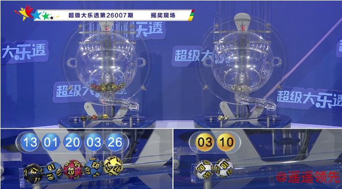 大乐透第2026007期奖号开出:01 03 13 20 26+ 03 10。其中前区三区比为2:2:1,奇偶比为3:2,冷热比为4:1。